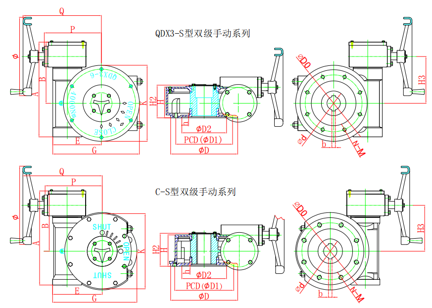 该系列是小蜗轮箱与大蜗轮箱对接组合成为二级传动蜗轮减速增压机构,提高了机械总效率,输入小力矩,开动大阀门,使操作人员省力,每种型号提供多个传动比,特殊型可输出360°无限多回转,能更好的匹配不同规格的阀门。